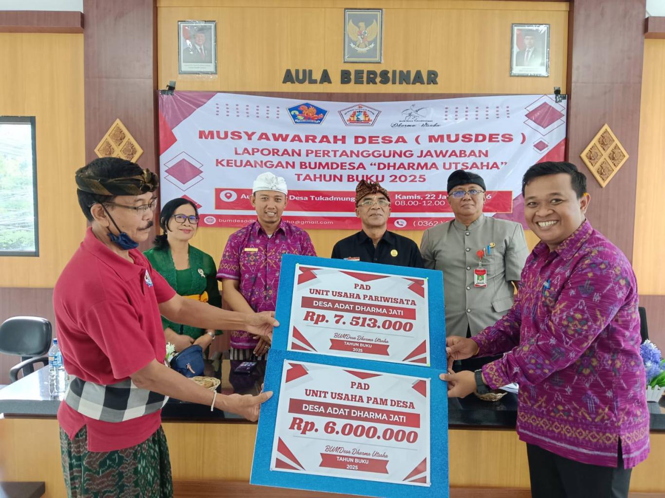 Dan untuk PAD ke desa adat sebesar Rp. 13,513,000 (unit Parkir pantai Rp. 7,513,000/ 50% dari keuntungan bersih dan PAM desa Rp. 6,000,000/Rp. 500rb tiap bulan). saat ini juga kami berikan paket sembako kepada karyawan unit sampah dan air serta parsel bagi nasabah prioritas baik Deposito dan pinjaman terlancar.